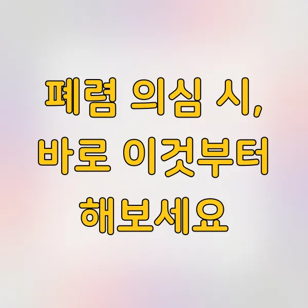 만약 위에 설명해 드린 증상들이 복합적으로 나타나 폐렴이 의심된다면, 당황하지 말고 다음의 순서대로 대처하는 것이 좋아요. 가장 중요한 것은 **병원 방문**이라는 점을 잊지 마세요. 우선, **안정**을 취하는 것이 중요해요. 무리한 활동은 폐에 부담을 줄 수 있으므로, 충분한 휴식을 취하며 몸을 편안하게 해주는 것이 좋습니다. 따뜻한 물을 자주 마시는 것도 가래 배출에 도움이 될 수 있어요. 다음으로, **체온을 자주 측정**하고 증상을 기록해두세요. 열이 얼마나 나는지, 기침의 양상이나 가래의 색깔, 숨쉬기 어려운 정도 등을 자세히 기록해두면 진료 시 의사에게 정확한 정보를 전달하는 데 큰 도움이 됩니다. 무엇보다 **빠르게 병원을 방문**하여 전문의의 정확한 진단을 받는 것이 가장 중요해요. 의사는 청진, 흉부 엑스선 촬영, 혈액 검사 등을 통해 폐렴을 진단하고, 원인균에 맞는 적절한 치료를 시작할 수 있습니다. 자가 진단이나 민간요법에만 의존하는 것은 위험할 수 있어요.