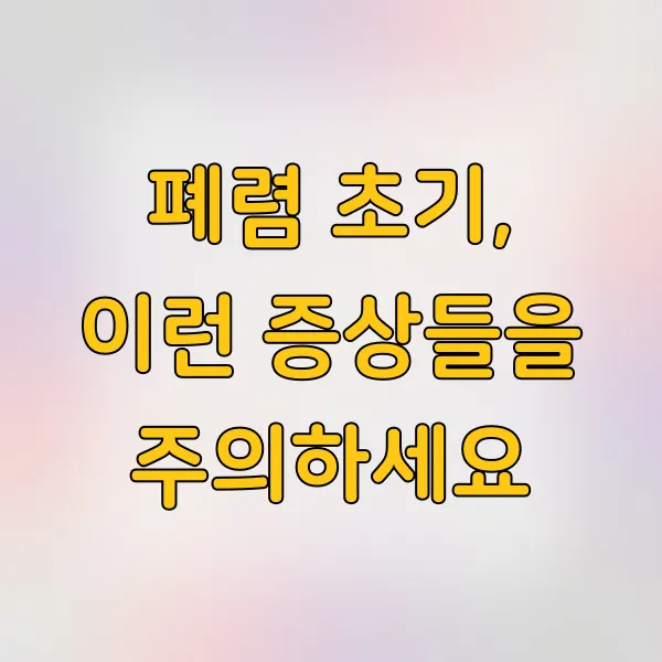 갑자기 기침이 잦아지거나 숨쉬기가 좀 불편하게 느껴지시나요? 혹시 몸살 기운까지 있다면, 단순한 감기겠거니 하고 넘기기 쉬운데요. 하지만 이러한 증상들이 폐렴의 시작일 수도 있다는 점, 알고 계셨나요? 폐렴은 폐에 염증이 생기는 질환으로, 초기에 제대로 대처하지 않으면 심각한 상태로 이어질 수 있어요. 그래서 오늘은 폐렴 초기 증상들을 여러분이 집에서 쉽고 빠르게 체크해 볼 수 있도록, 구체적인 정보와 함께 자세히 알려드릴게요. 평소 건강 관리에 조금 더 신경 써서, 우리 몸에 보내는 신호를 놓치지 않는 것이 중요하답니다. 이 글을 통해 폐렴의 초기 신호를 알아차리고, 필요한 조치를 취하는 데 도움을 받으시길 바라요. 건강은 미리 챙기는 것이 가장 좋으니까요.